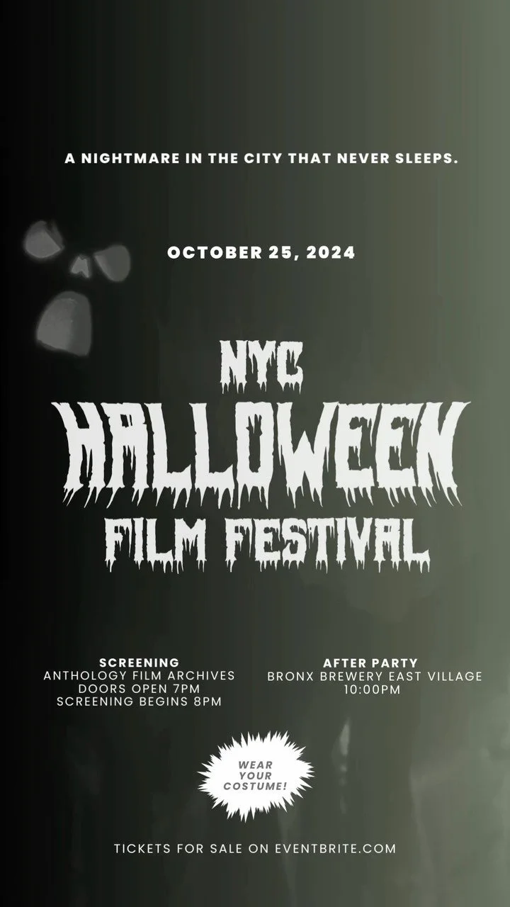 The New York City Halloween Film Festival is a 501(c)(3) nonprofit film festival that celebrates the spirit of Halloween by bringing frights to the screens of the best city in the world. Through annual film festival programming, the festival exhibits the creative visions of killer up-and-coming filmmakers while cultivating a space that encourages inspiration and collaboration between film lovers and creatives. NYC Halloween Film Festival brings together all things spooky and eclectic with a twist that promises to deliver chills, thrills, and a wickedly good time.